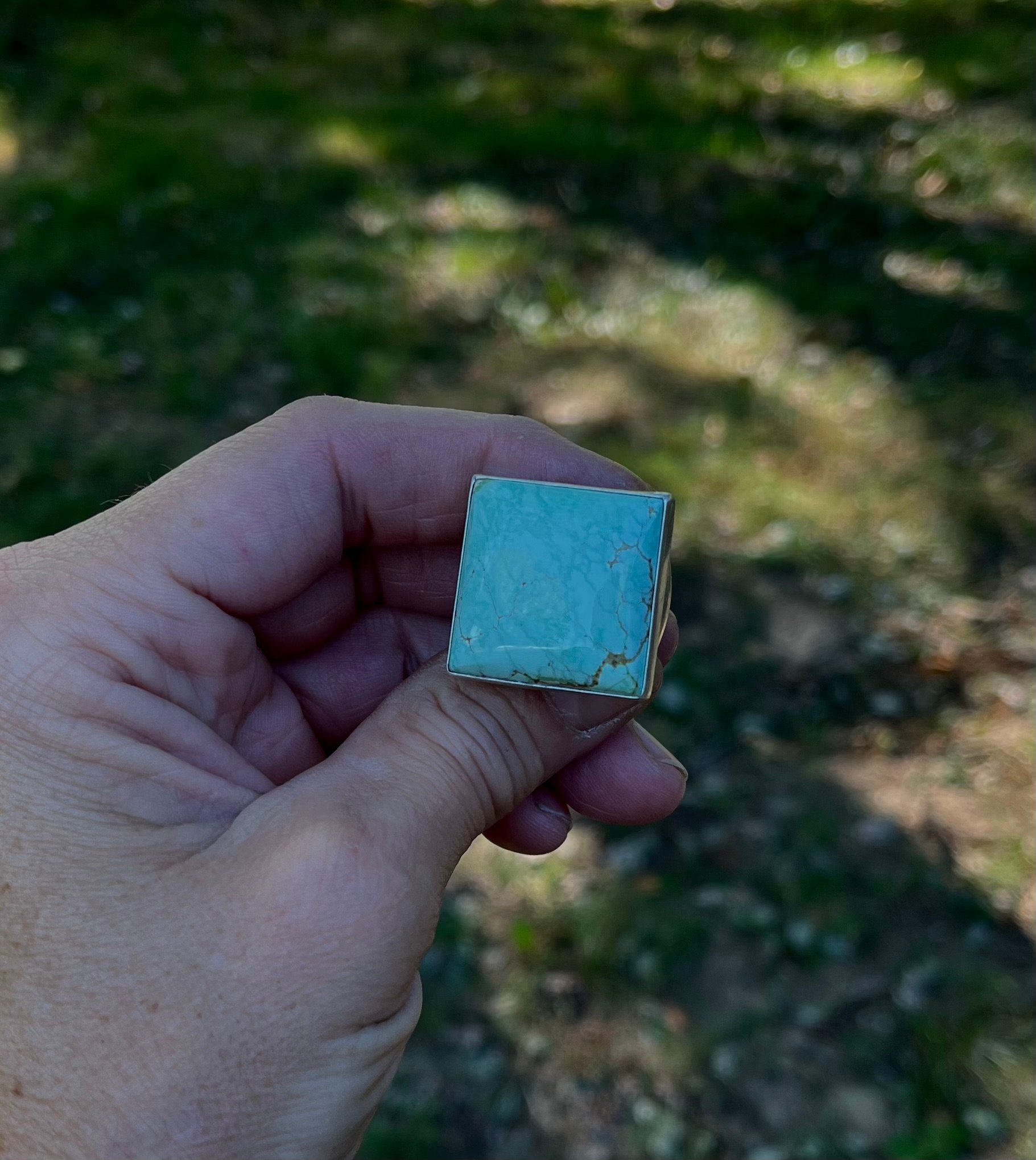Gorgeous and rare Antelope Hills Variscite Ring from Nevada set in heavier gauge sterling. Wide band.