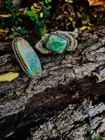 This high grade, Australian Variscite is set in heavy gauge sterling silver. This one is definitely made to last and will only get better with time. Beautiful bright green color and light matrix makes this little beauty pop on your finger.
