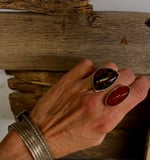 The two stone, open style rings are my absolute favorite to make and to wear. I love the uniqueness and simplicity of this style. It seems that the Carnelian and Obsidian stones were meant to be floating together with the dark red color of Carnelian and almost like red flowers of the Obsidian stone.