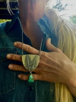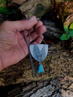 Ferns have always been one of my favorite plants. I made this pendant with sterling silver ferns on a shield shape sterling with high grade Royal Blue dandgle turquoise