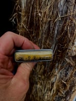 Landscape jasper is known for its brown color and superimposed or intertwined striations of different tones.