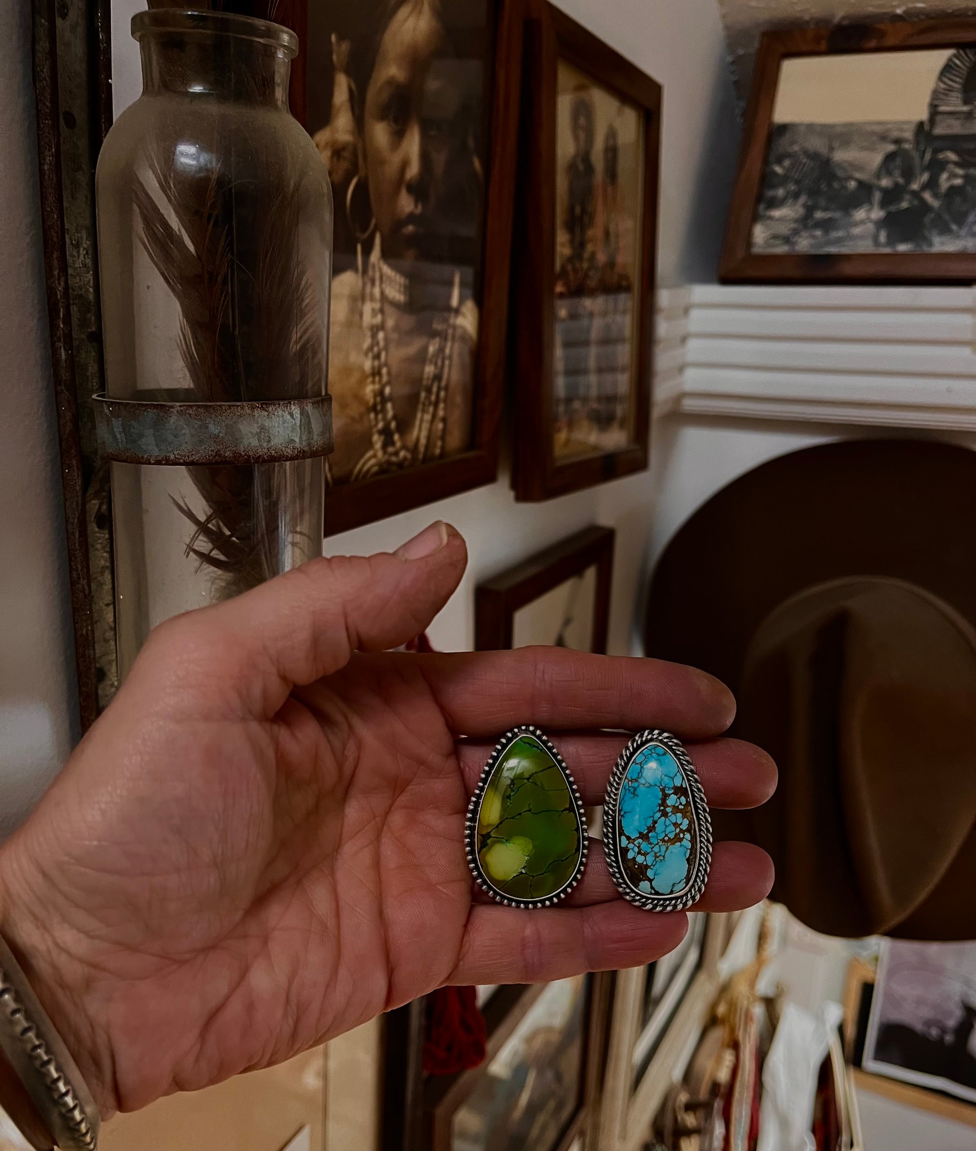 Montezuma Royston turquoise is from the Montezuma deposit in Esmeralda County, Nevada, near the Royston mining district. While the Royston district encompasses several old claims, the Montezuma deposit was discovered in 1905 and is now a part of this renowned Nevada mining region, known for its wide range of colors. Turquoise particularly from the Montezuma deposit is high grade with blue like sky to green colors and brown to black matrix.