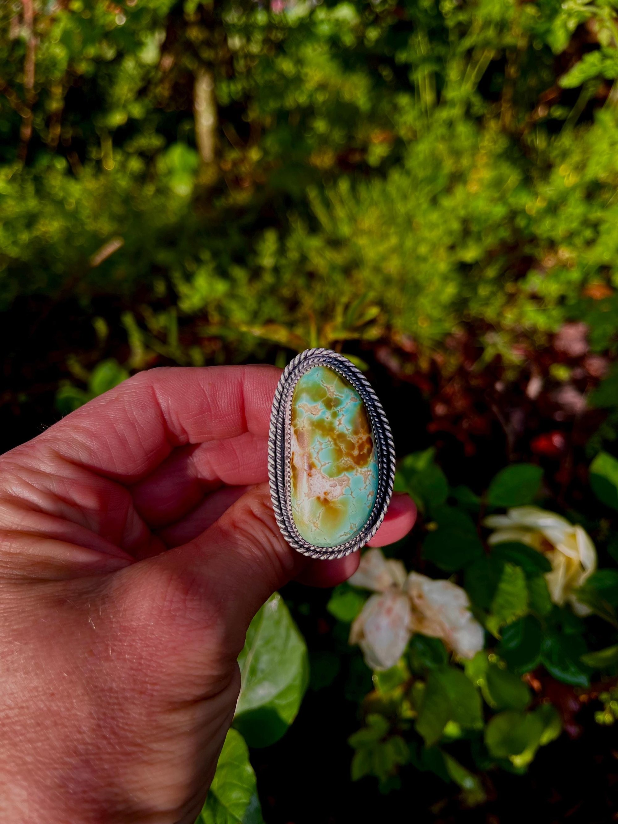 Natural Pilot Mountain Turquoise Statement Ring Sterling Silver