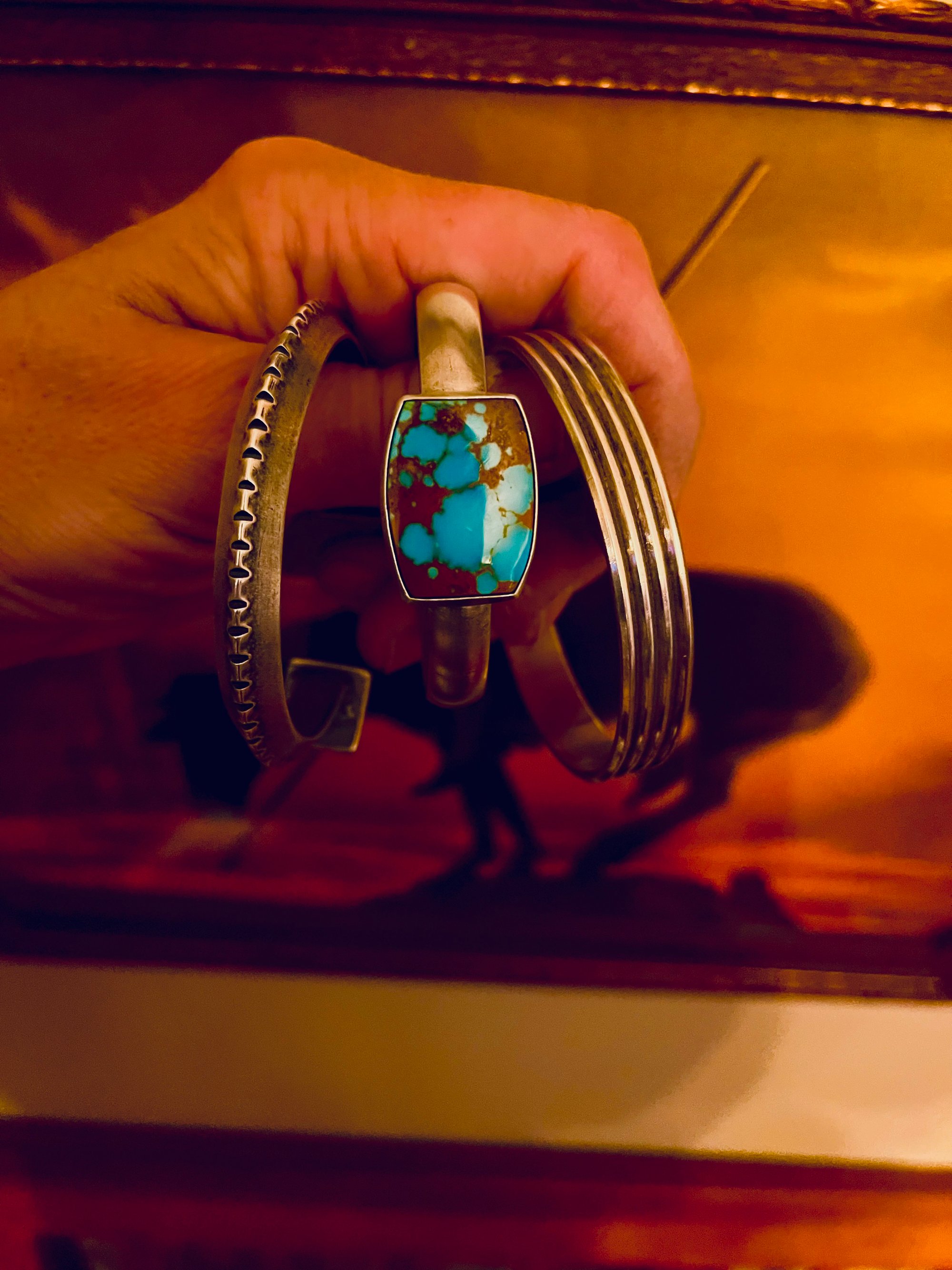 Stunning, high grade Royston turquoise cuff set in sterling silver.
