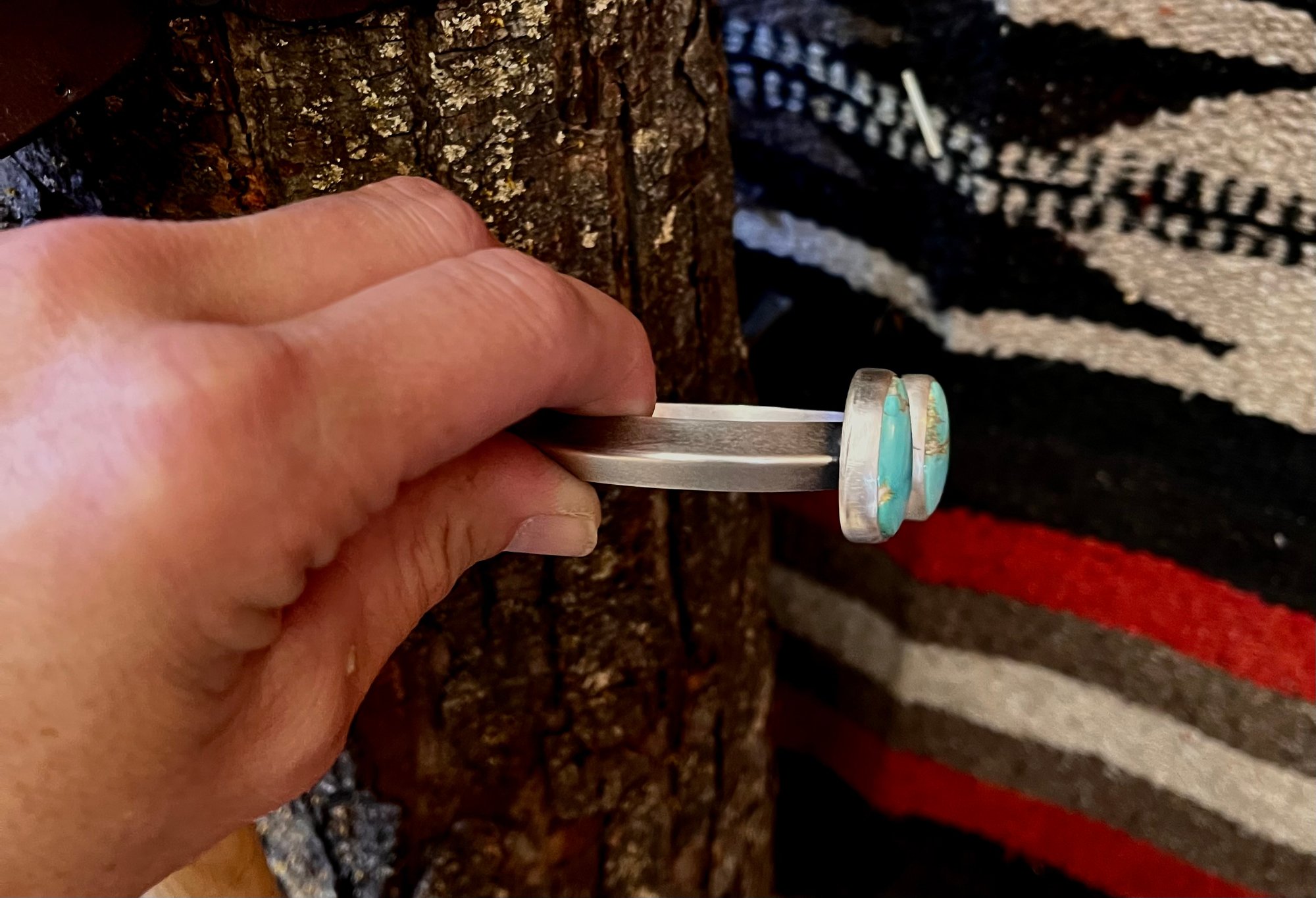 Triangle Hand Forged Sterling Cuff Bracelet with Iron Maiden Turquoise (thick width)