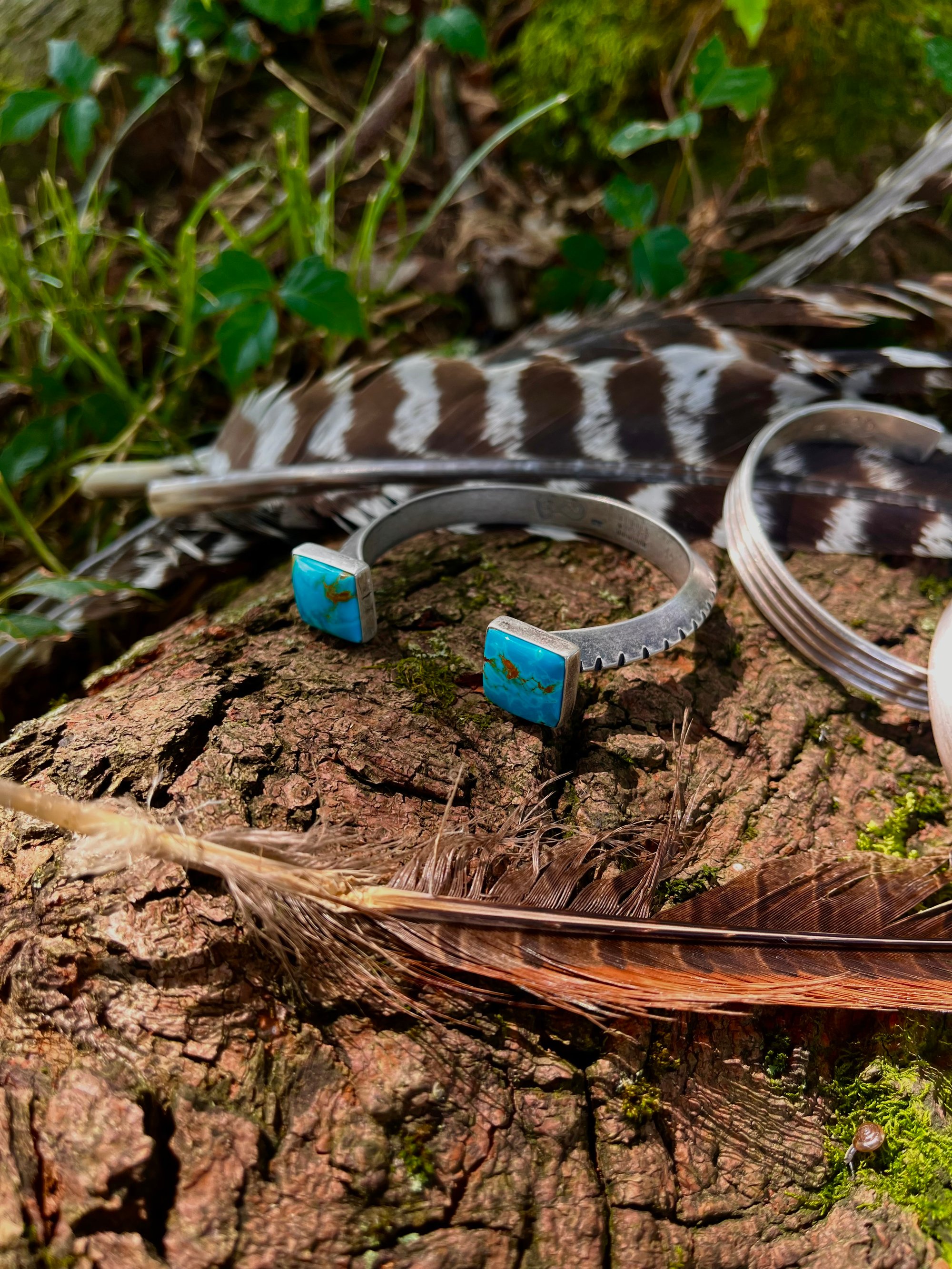 Triangle Hand Forged Sterling & Turquoise Cuff Bracelet (Medium Width)