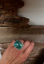 Stunning high grade Cloud Mountain turquoise set in heavier gauge sterling on a medium width band.